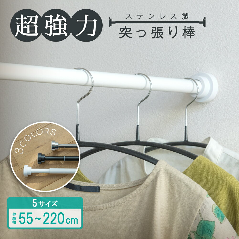突っ張り棒 ステンレス 強力 伸縮自在 つっぱり棒 クローゼット収納 お風呂 トイレ 衣類 収納 物干し 棚 押入れ コート掛け カーテンロッド 布団干し 洗面所 リビング 耐荷重 玄関 カーテン 伸縮棒 浴室 整理 ベランダ ショップ:Selectshop-one