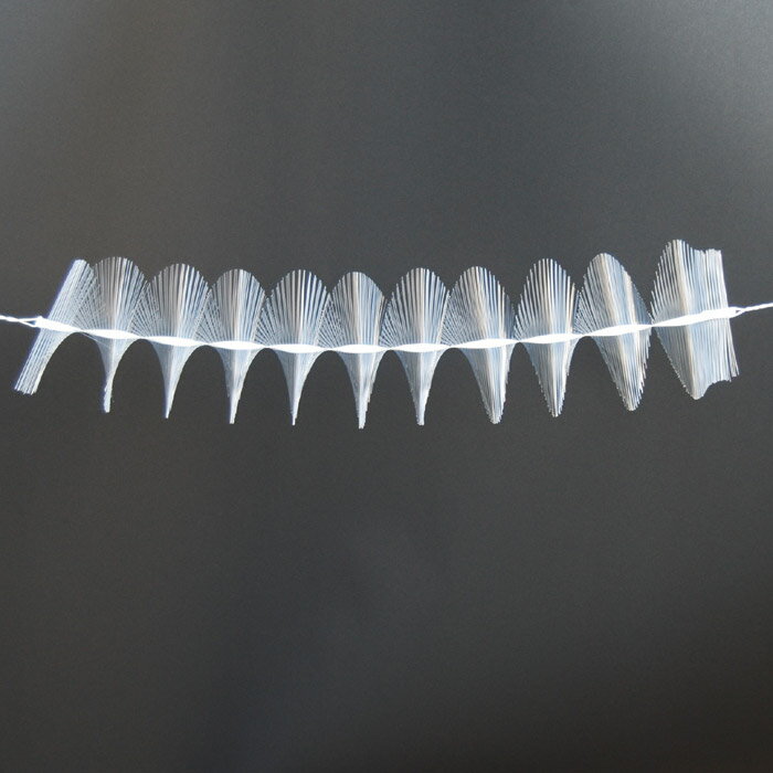●本製品はTYN害獣鳥対策研究会が開発したカラスを遠ざける目的のもので、透明ファイバーを連ねた帯状の紐で、ラセン状にひねった状態のものです。